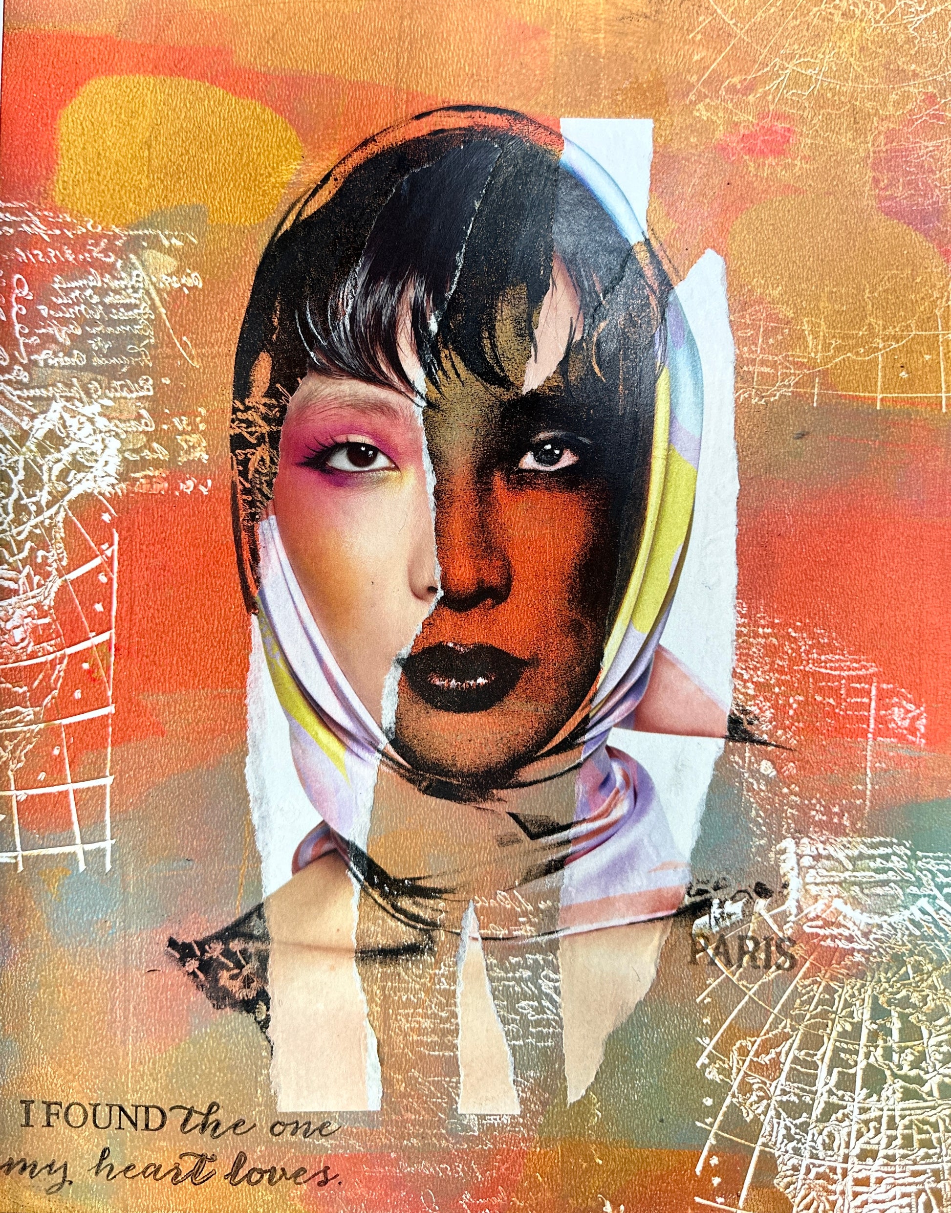 Mixed-media artwork combining printing with acrylic paint, drawing, collage, and stencil techniques to reinterpret a photographic reference. The original image is transformed through layered fading effects, textures, and symbolic alterations characteristic of the Faded Souls series.