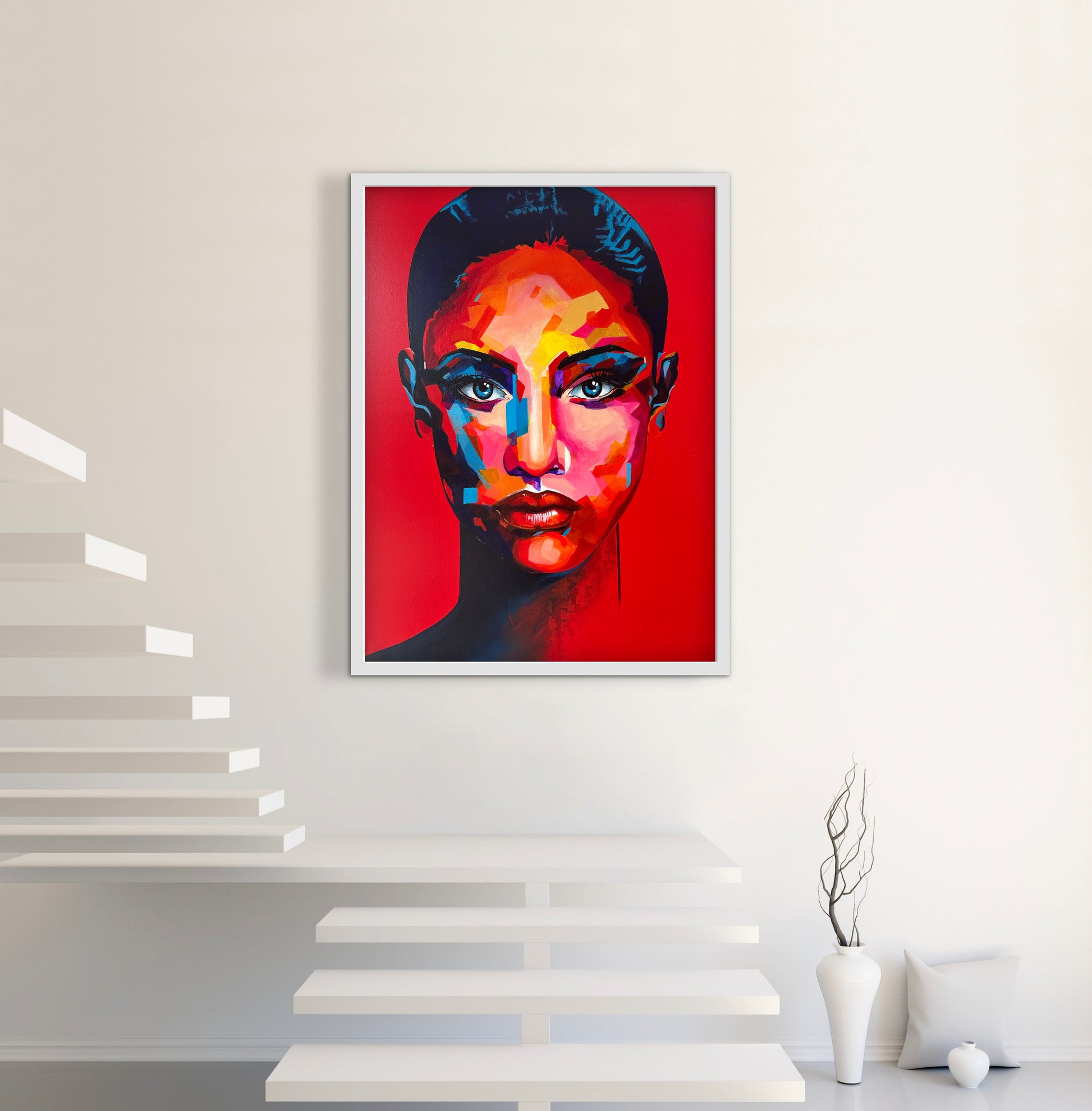 This artwork presents a contemporary and futuristic vision of femininity—an “Eve 2.0” shaped through color and light.
